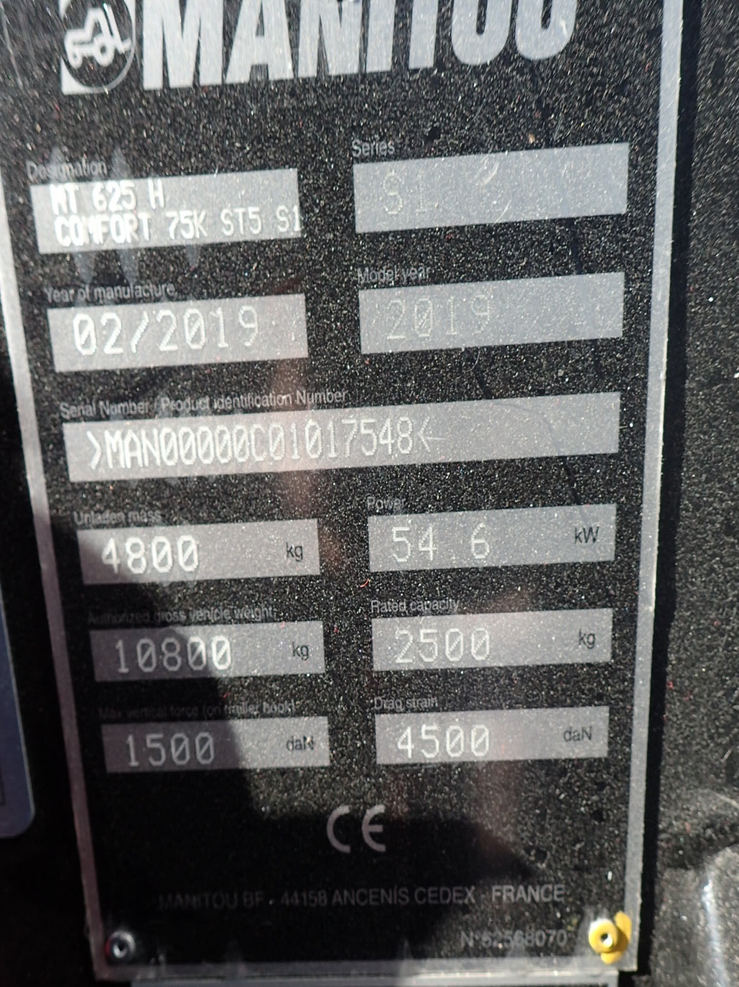 Year 2019 | Hours 184 | CE Marked | Nice and well maintained, Drive configuration 4x4 , Lifting height (cm) 5850,Lifting capacity (kg) 2500, Total weight (kg) 4800, Engine: 75 HP, Air conditioning